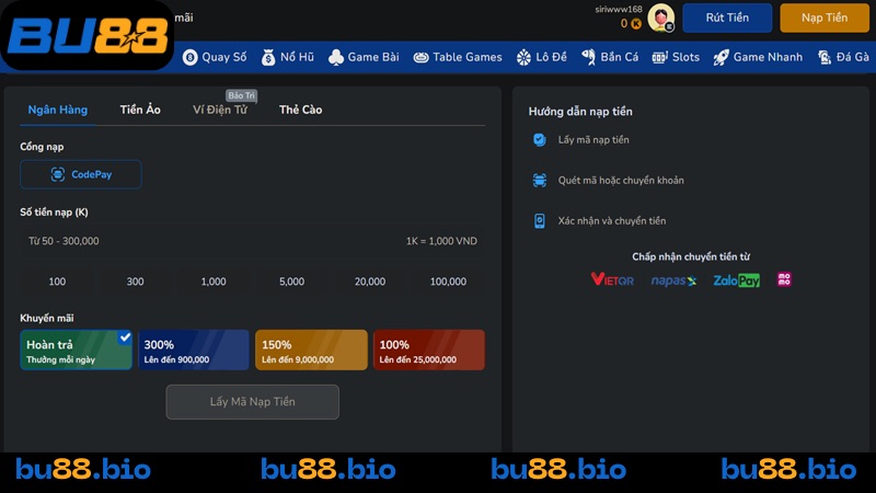 Thời gian xử lý giao dịch nạp tiền chỉ trong vòng vài phút, trong khi rút tiền được thực hiện trong vòng 24 giờ. Đặc biệt, BU88 không thu phí giao dịch và hỗ trợ khách hàng 24/7 giải quyết mọi vấn đề liên quan đến thanh toán.